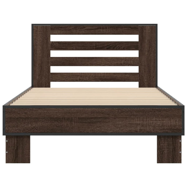 Sängynrunko ruskea tammi 90x200 cm tekninen puu ja metalli