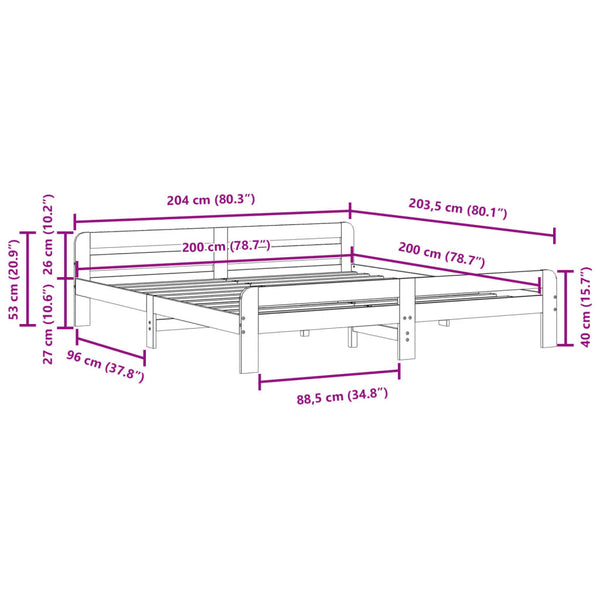 - Sängyn kokonaismitat: 204 x 203,5 x 53 cm (P x L x K)
