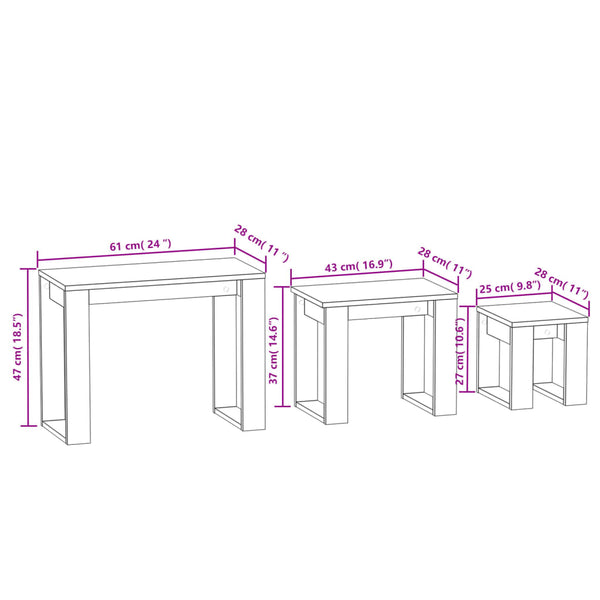 - Sisäkkäinen muotoilu: Eri kokojensa ansiosta nämä sivupöydät eivät ainoastaan kohtaa monia tarpeitasi, mutta tarjoavat myös lisää tilaa ja helpon säilytystavan, sillä pienempi pöytä voidaan piilottaa suuremman alle.