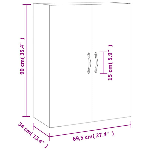 Harmaa seinäkiinnitettävä kaappi 69,5x34x90cm puinen