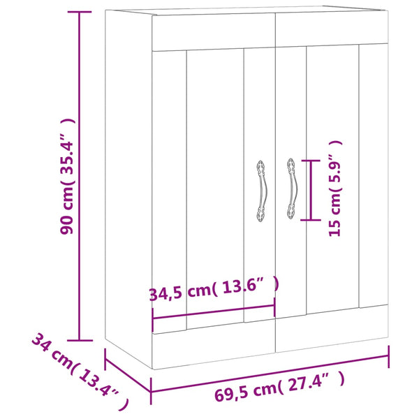 Seinäkiinnitettävä kaappi harmaa 69,5x34x90 cm tekninen puu