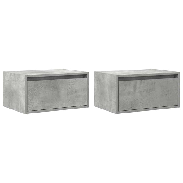 Betoninharmaa seinäkiinnitettävät yöpöydät led-valoilla 2 kpl