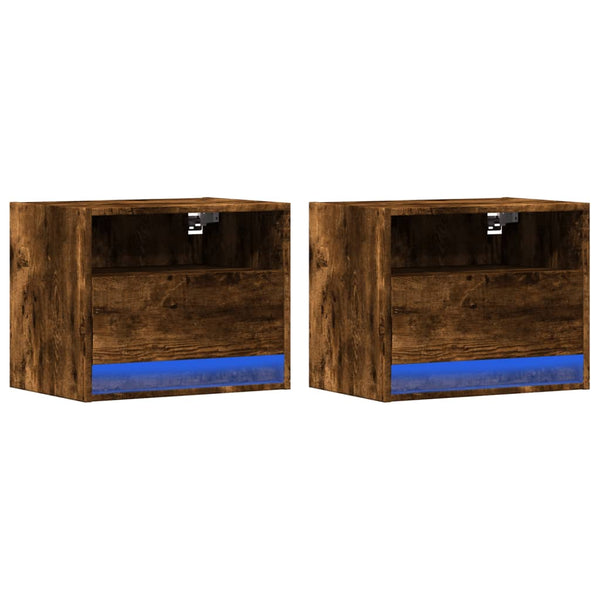 Savutammi seinäkiinnitettävät yöpöydät led-valoilla 2 kpl