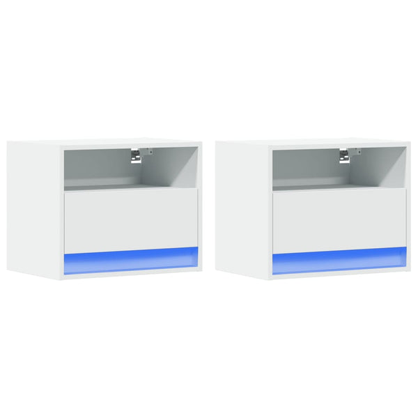 Valkoinen seinäkiinnitettävät yöpöydät led-valoilla 2 kpl