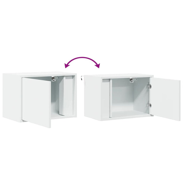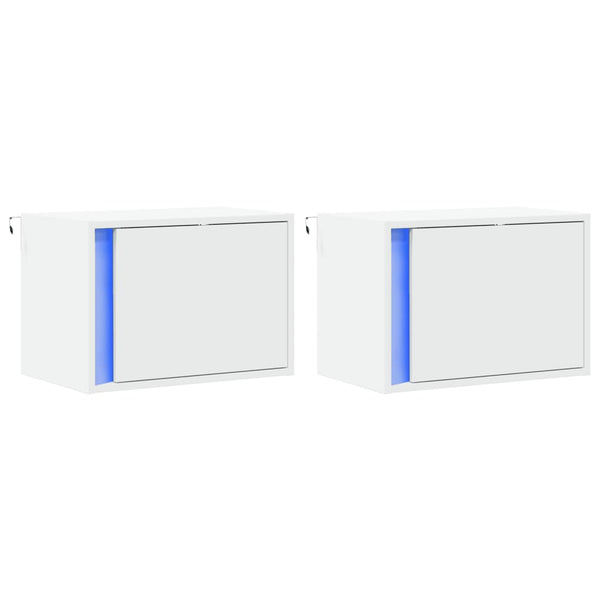 Valkoinen seinäkiinnitettävät yöpöydät led-valoilla 2 kpl