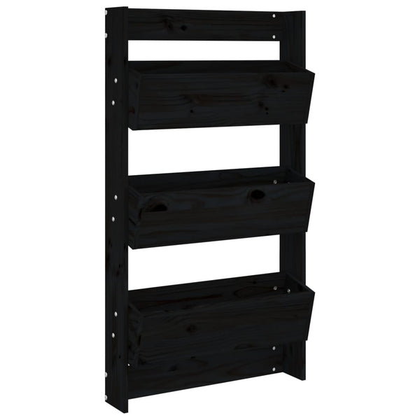 Musta seinäkukkalaatikko 60x18,5x110cm 3 tasoa, mänty