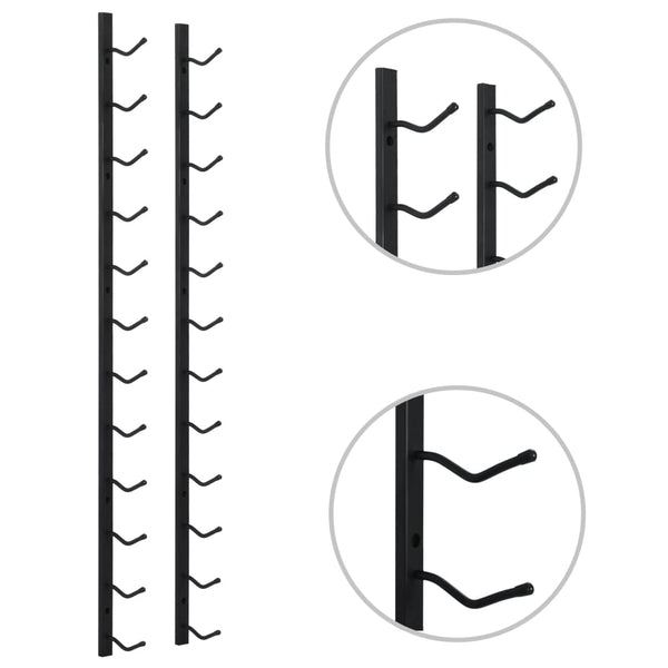 Musta seinälle kiinnitettävä viinipulloteline 12 pullolle rauta