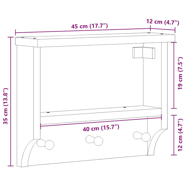Valkoinen seinänaulakko sandnes 45x12x35cm mänty