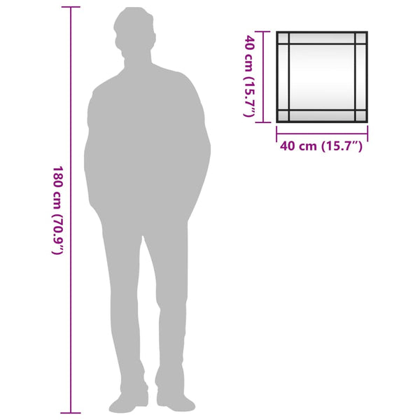 Musta seinäpeili 40x40cm neliö rauta