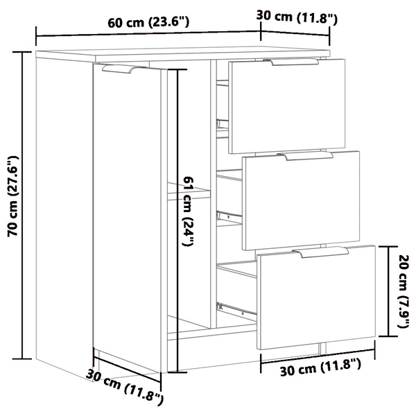 - Mitat: 60 x 30 x 70 cm (L x S x K)