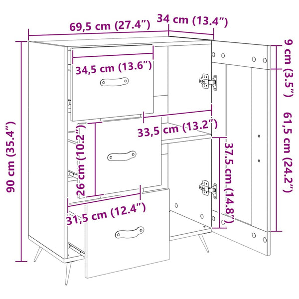 - Mitat: 69,5 x 34 x 90 cm (L x S x K)