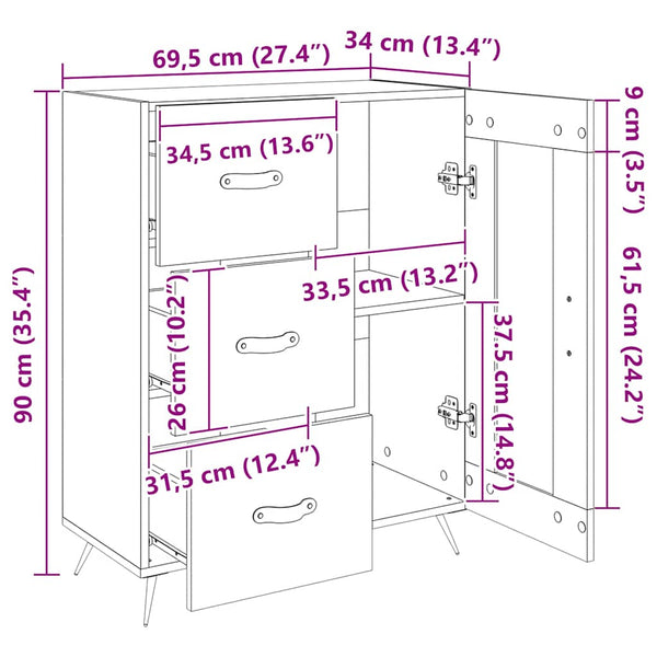 - Mitat: 69,5 x 34 x 90 cm (L x S x K)