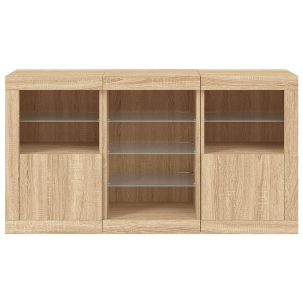 Sonoma-tammi senkki led-valoilla 123x37x67cm