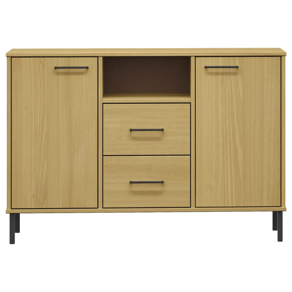 Ruskea senkki metallijaloilla 113x40x77cm täyspuu oslo