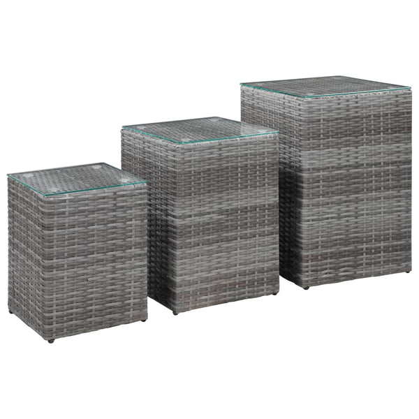 Harmaa sivupöydät 3 kpl lasipöytälevy polyrottinki