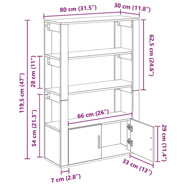 - Yleiset mitat: 30 x 80 x 119.5 cm (L x P x K)