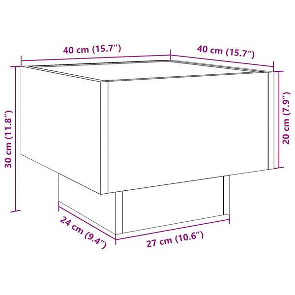 Valkoinen sivupöytä led-valoilla 40x40x30cm puinen