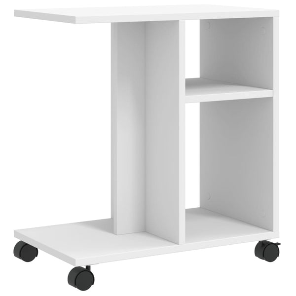 Valkoinen sivupöytä pyörillä 50x30x55cm puinen