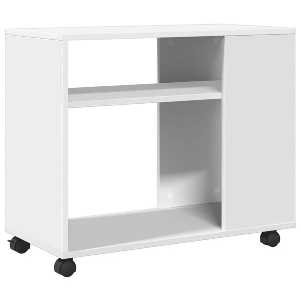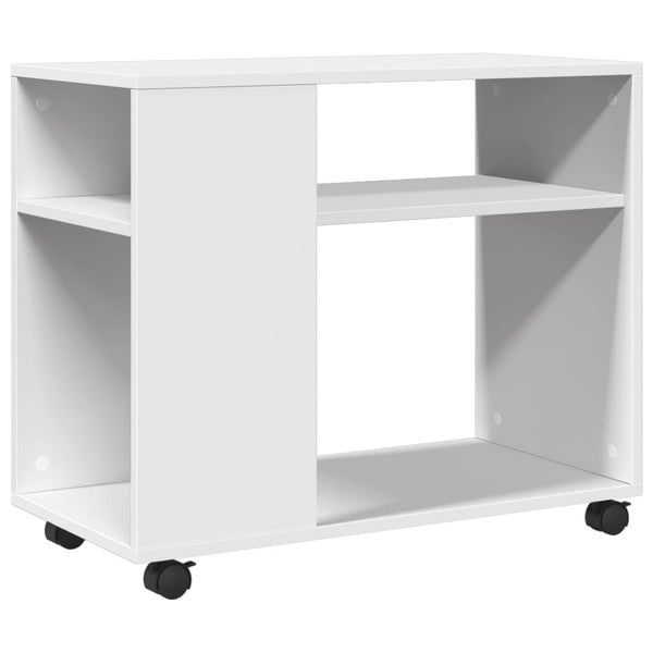 Valkoinen sivupöytä pyörillä 70x35x60cm puinen