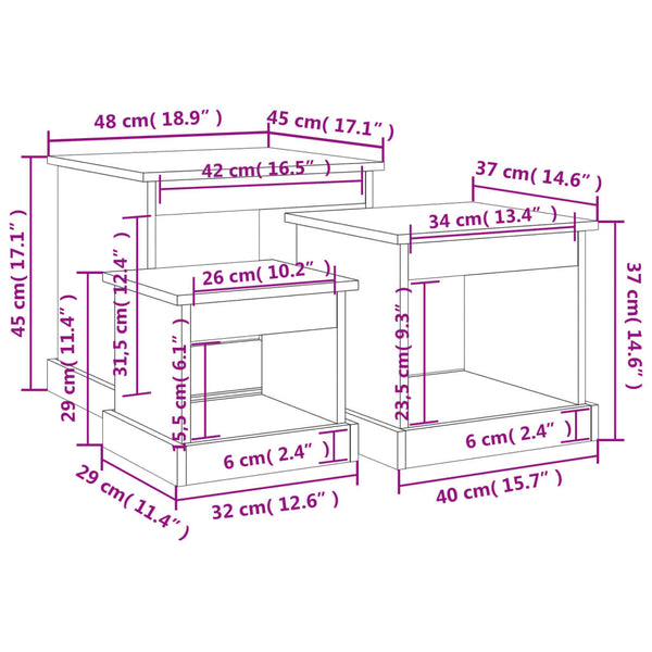 - Monipuolinen toimivuus: Tämä kolmen pöydän sarja on monipuolinen! Mitä tahansa niistä voidaan käyttää makuuhuoneessa yöpöytänä, sivu- tai sohvapöytänä olohuoneessa ja toimistossa.