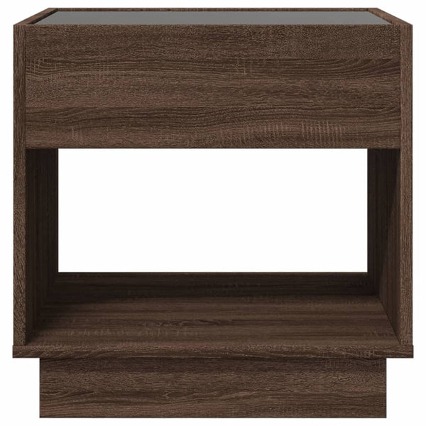 Ruskea sohvapöytä infinity led-valoilla 50x50x50cm tammi