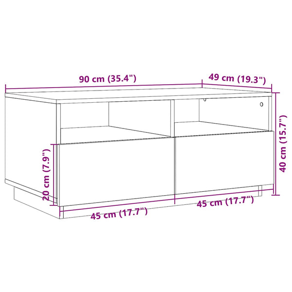 Sonoma-tammi sohvapöytä led-valoilla 90x49x40cm