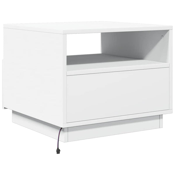 Valkoinen sohvapöytä led-valoilla 50x49x40cm
