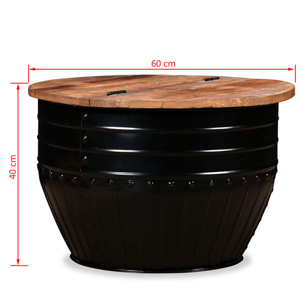 Musta sohvapöytä täysi uusiokäytetty puu tynnyrimuoto