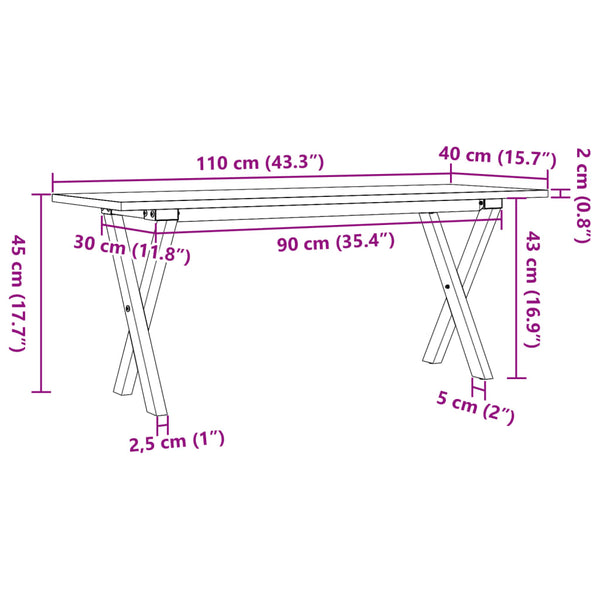 Sohvapöytä x-runko 110x40x45cm mänty ja valurauta
