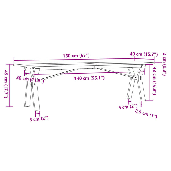 Sohvapöytä y-runko 160x40x45cm mänty ja valurauta