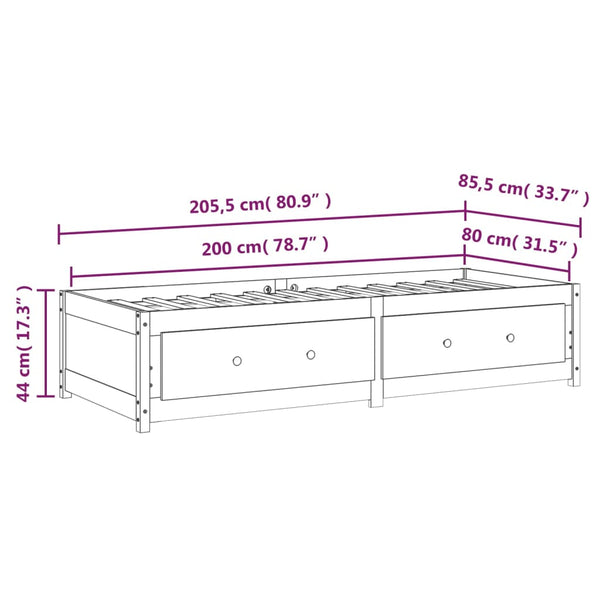 - Tämä sängynrunko sopii patjalle, jonka mitat ovat 80 x 200 cm.