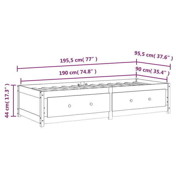 - Tämä sängynrunko sopii patjalle, jonka mitat ovat 90 x 190 cm (3FT Single).
