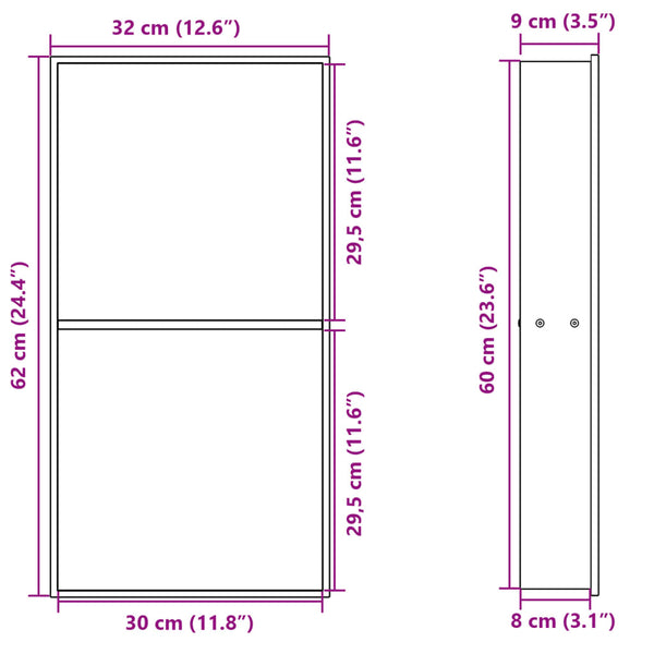 - Kokonaismitat: 32 x 62 x 9 cm (L x S x K)