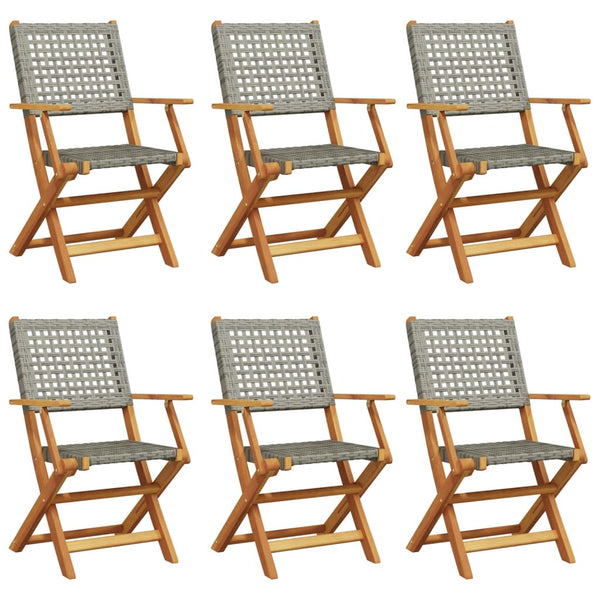 Harmaa taitettavat puutarhatuolit 6 kpl polyrottinki ja puu