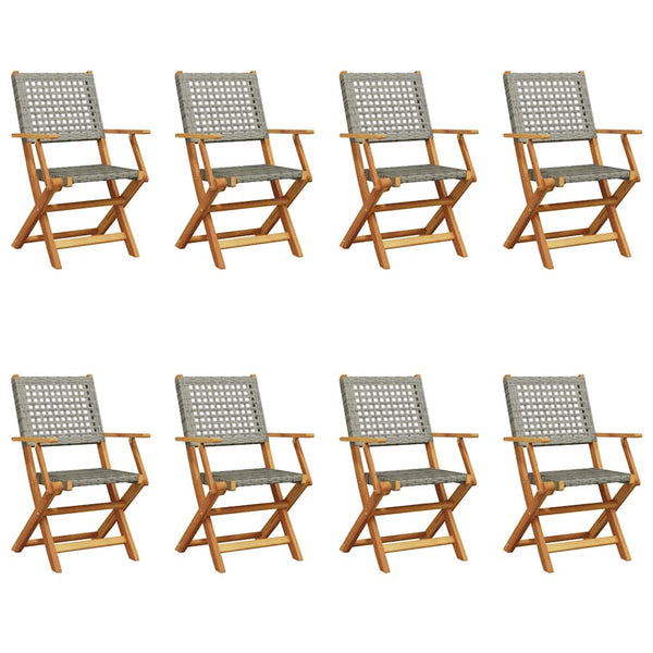 Harmaa taitettavat puutarhatuolit 8 kpl polyrottinki ja puu