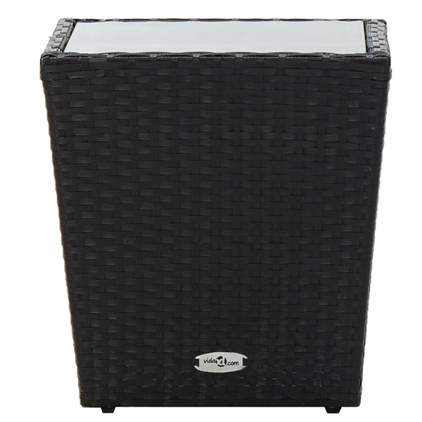 Musta teepöytä 41,5x41,5x43cm polyrottinki ja karkaistu lasi