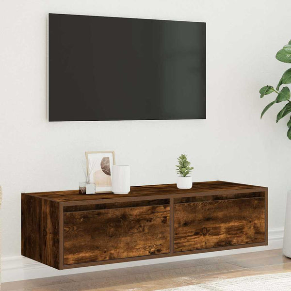 Tv-kaappi led-valoilla savustettu tammi 100X35,5x25cm