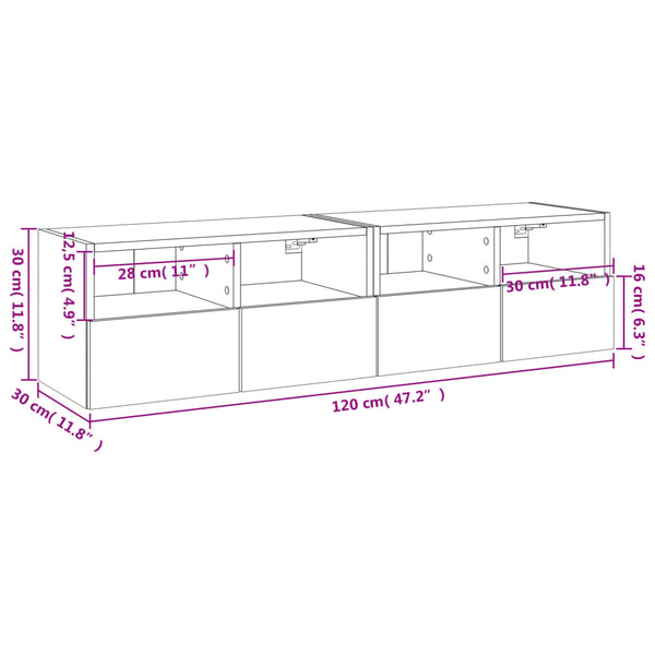 Betoninharmaa tv-seinäkaapit 60x30x30cm 2 kpl puinen
