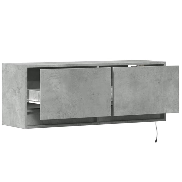 Betoninharmaa tv-seinäkaappi 100x31x35cm led-valoilla