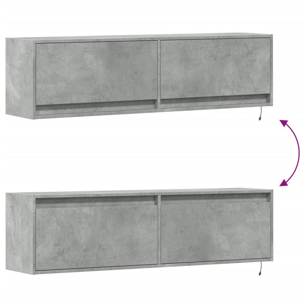 Betoninharmaa tv-seinäkaappi 140x31x38cm led-valoilla