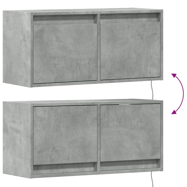 Betoninharmaa tv-seinäkaappi 80x31x35cm led-valoilla