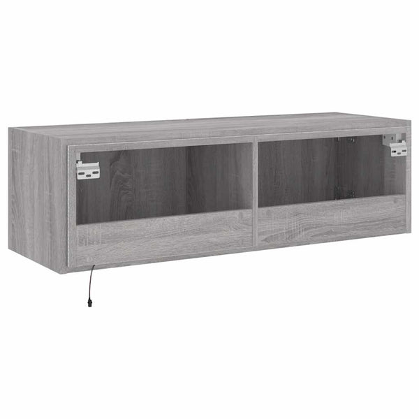 Harmaa tv-seinäkaappi 100x35x31cm led-valoilla sonoma
