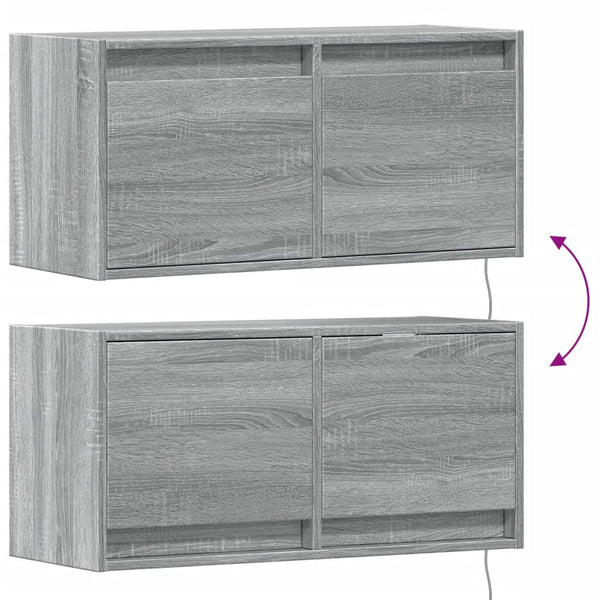 Harmaa tv-seinäkaappi 80x31x35cm led-valoilla sonoma