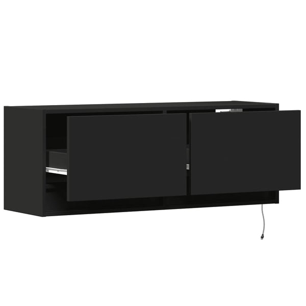 Musta tv-seinäkaappi Antinogel 100x31x35cm (led-valoilla)