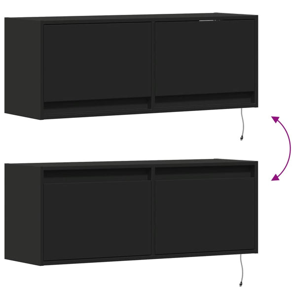 Musta tv-seinäkaappi 100x31x35cm led-valoilla
