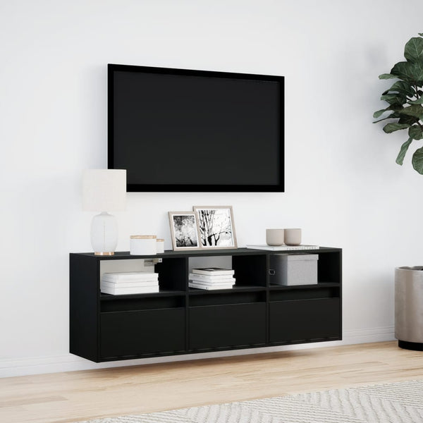 Musta tv-seinäkaappi 130x31x45cm led-valoilla