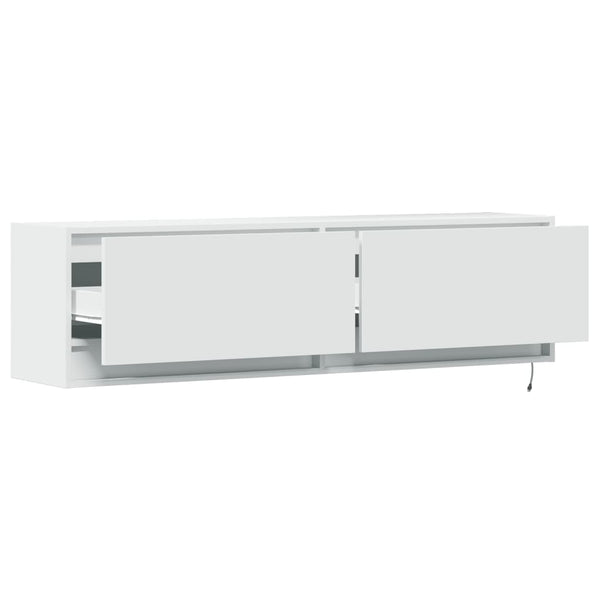 Valkoinen tv-seinäkaappi 140x31x38cm led-valoilla