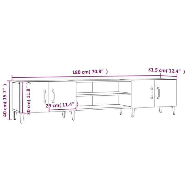 Valkoinen tv-taso 180x31,5x40cm korkeakiilto, puinen