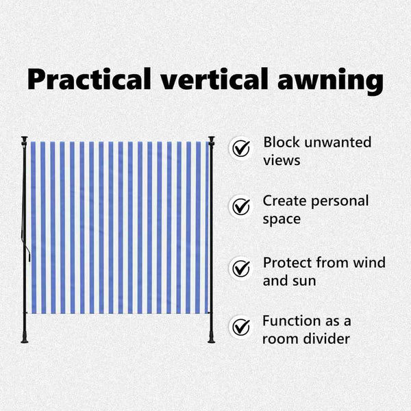- Kestävä materiaali: Näkösuojan runko on valmistettu teräksestä, joka on vankka ja kestävä materiaali. UV-kestävä kangas on PU-pinnoitettu. Se suojaa perhettäsi ja ystäviäsi UV-säteiltä ja auringon häikäisyltä.