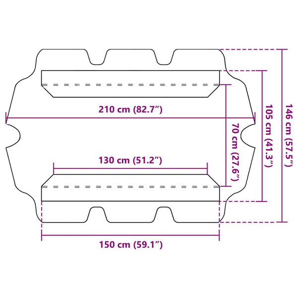 • Katoksen mitat: 150 x 110 x 18 cm (P x L x K)